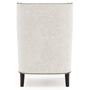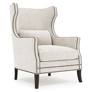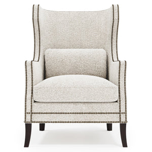 With its stately aesthetic, the Kingston wing chair conveys a promise of lasting stature and luxurious comfort. The high statuesque back gives way to gracefully arched wings that drift into a luxe down cushioned seat. Nailhead trim adorns the upholstery for a refined touch.