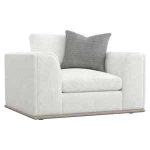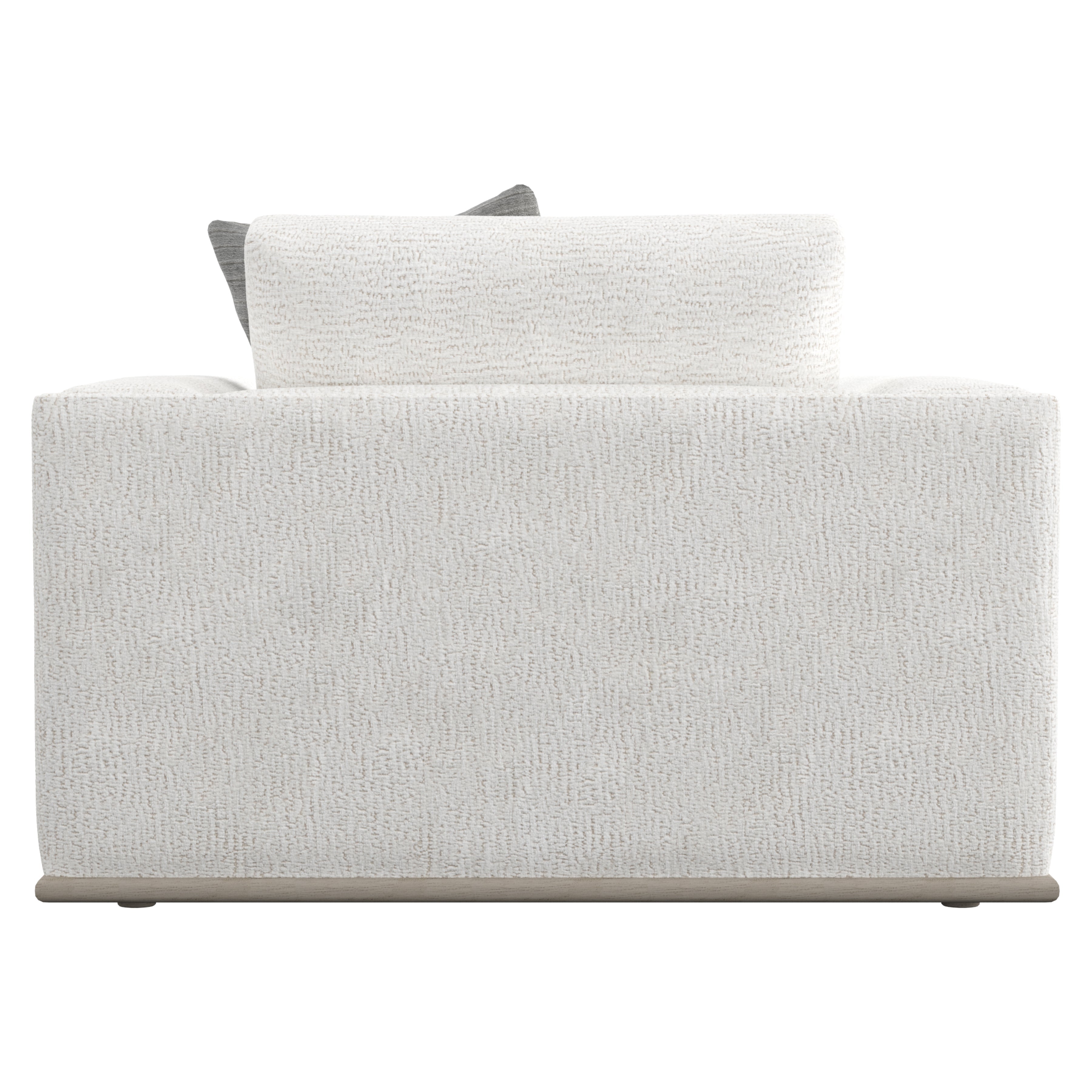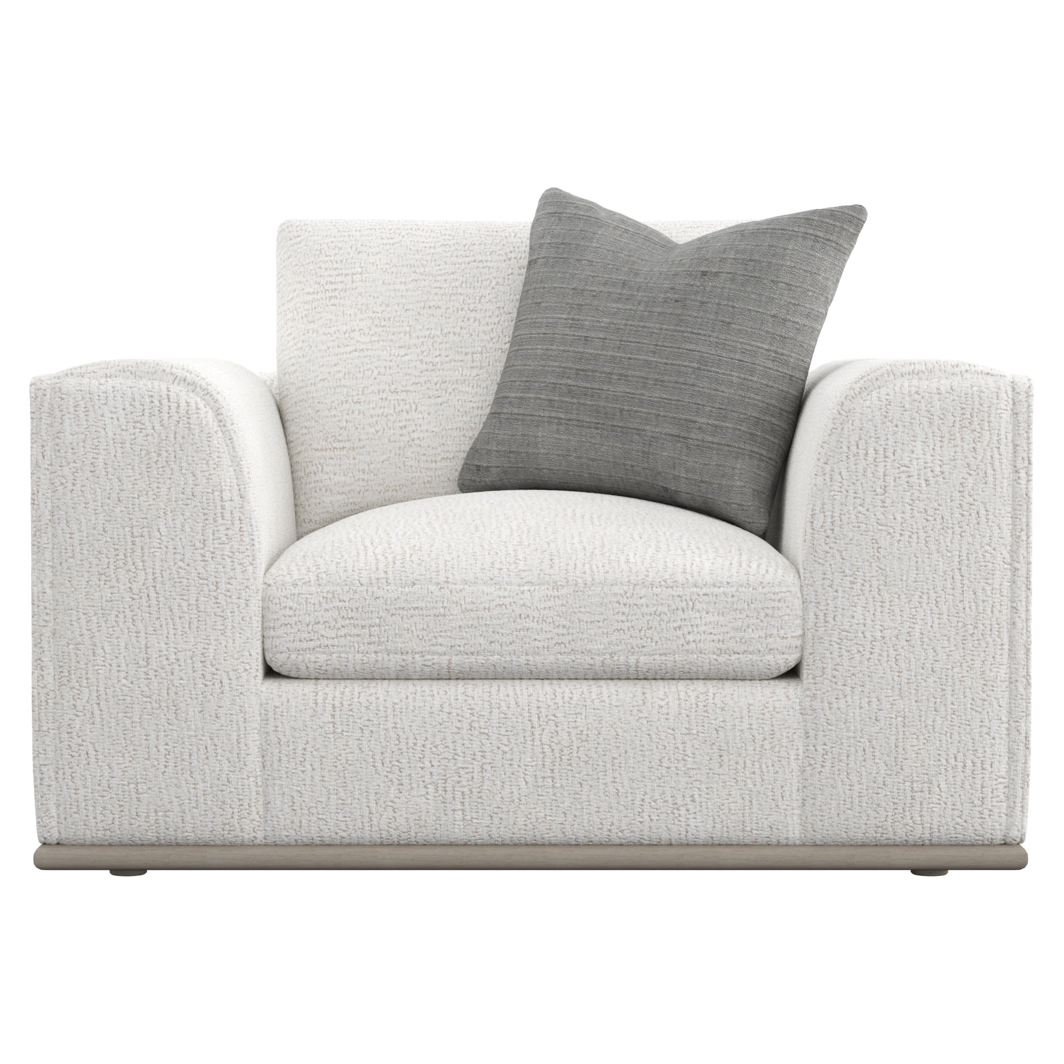 Luxurious and chic, the Prague chair 1/2 has a wide, low-profile frame that achieves a grounded, modern look. A sumptuous spring down cushion and fiber back pillow offer enduring comfort. At the base, an exposed wood band draws attention to the clean, linear design of this elegant piece.