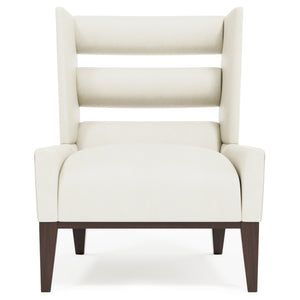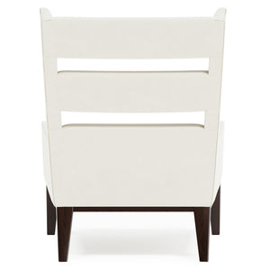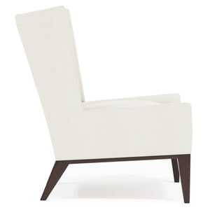 The Orleans chair gives new life to classic forms, combining attributes of both ladderback and wingback designs. Fully upholstered in leather for maximum comfort, the chair features a tight seat and low-profile flared arms. Exposed tapered legs add a distinctly modern touch. This timeless and transitional look blends seamlessly with a variety of styles.