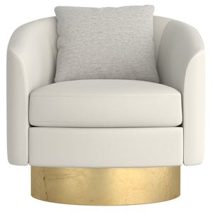 The Camino swivel chair is elegance in motion. Luxurious spring down cushioning invites relaxation, while the barrel back design brings softness and balance to a room. Finished in lustrous gold leaf, a wide, round base conceals the swivel. Welt trim is a subtle finishing touch.