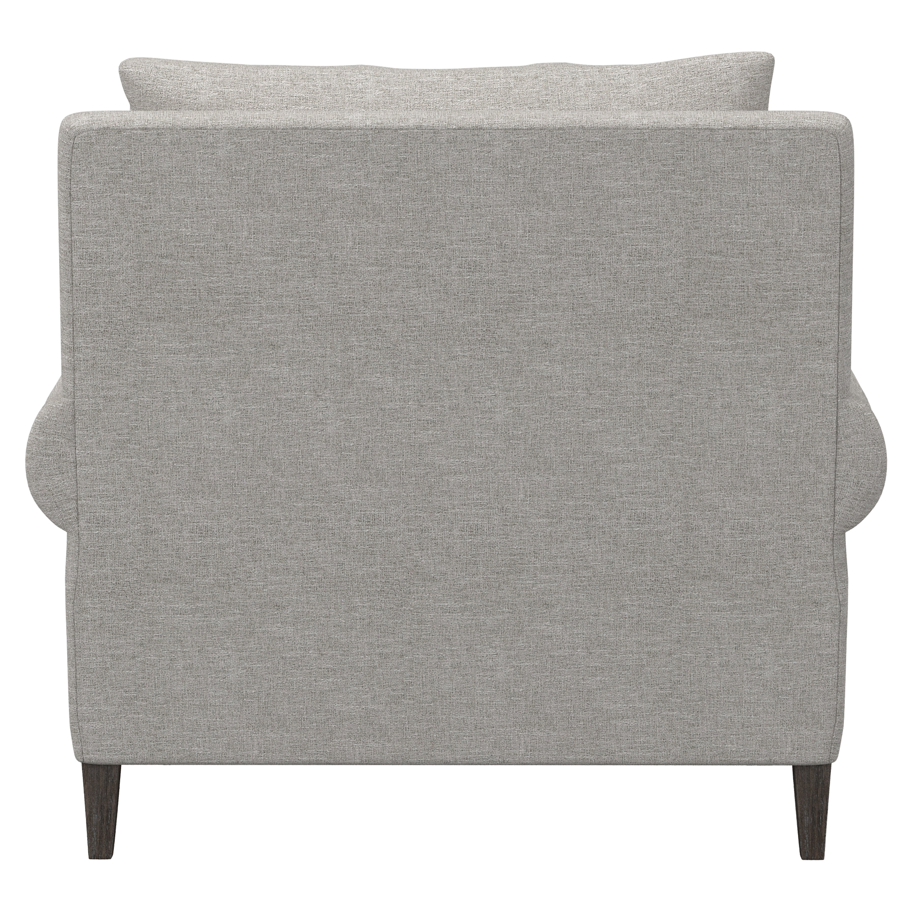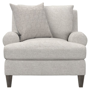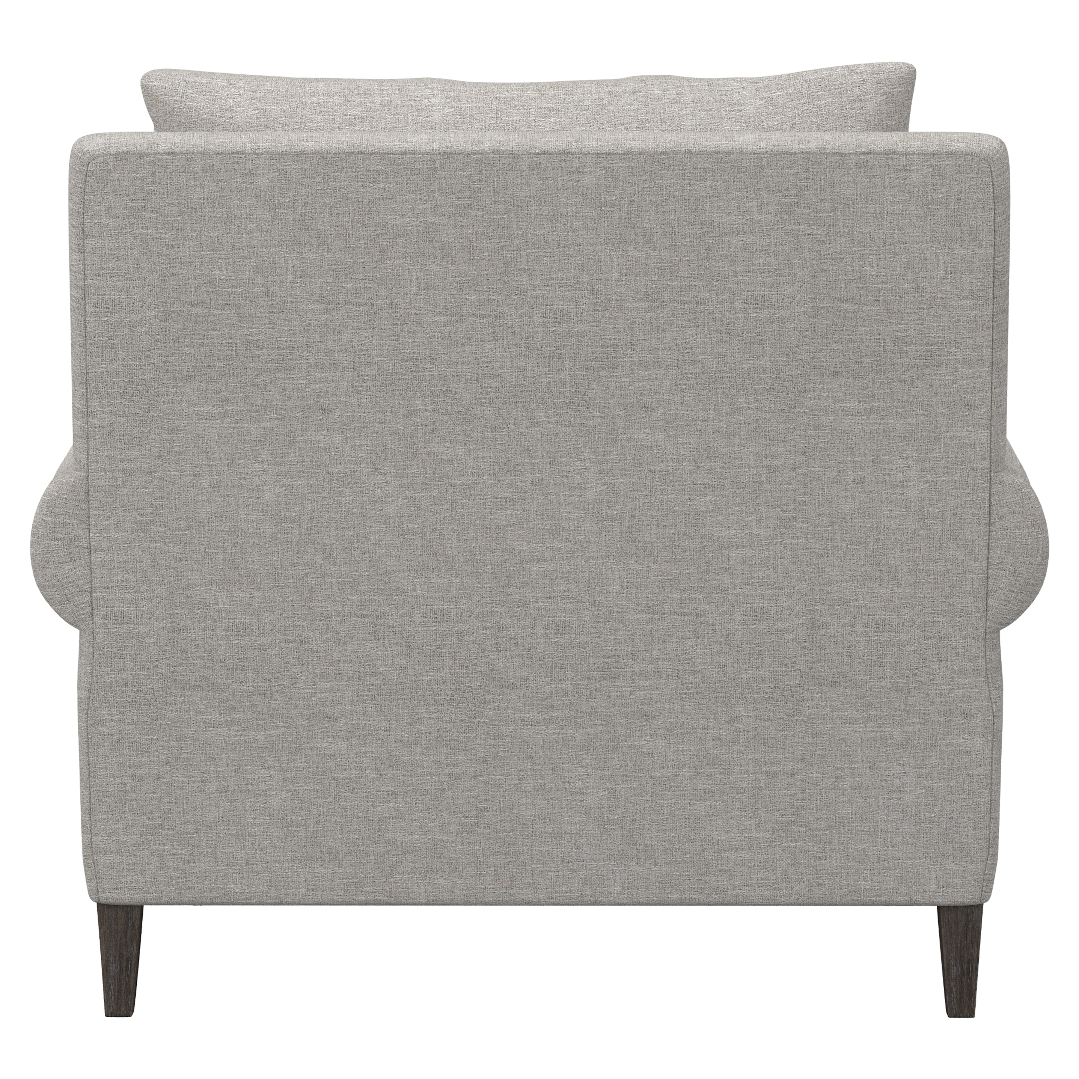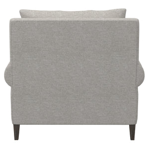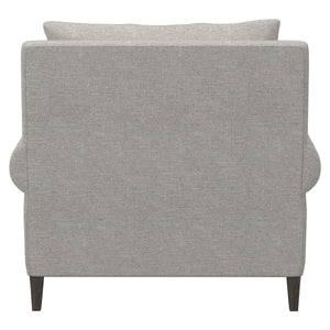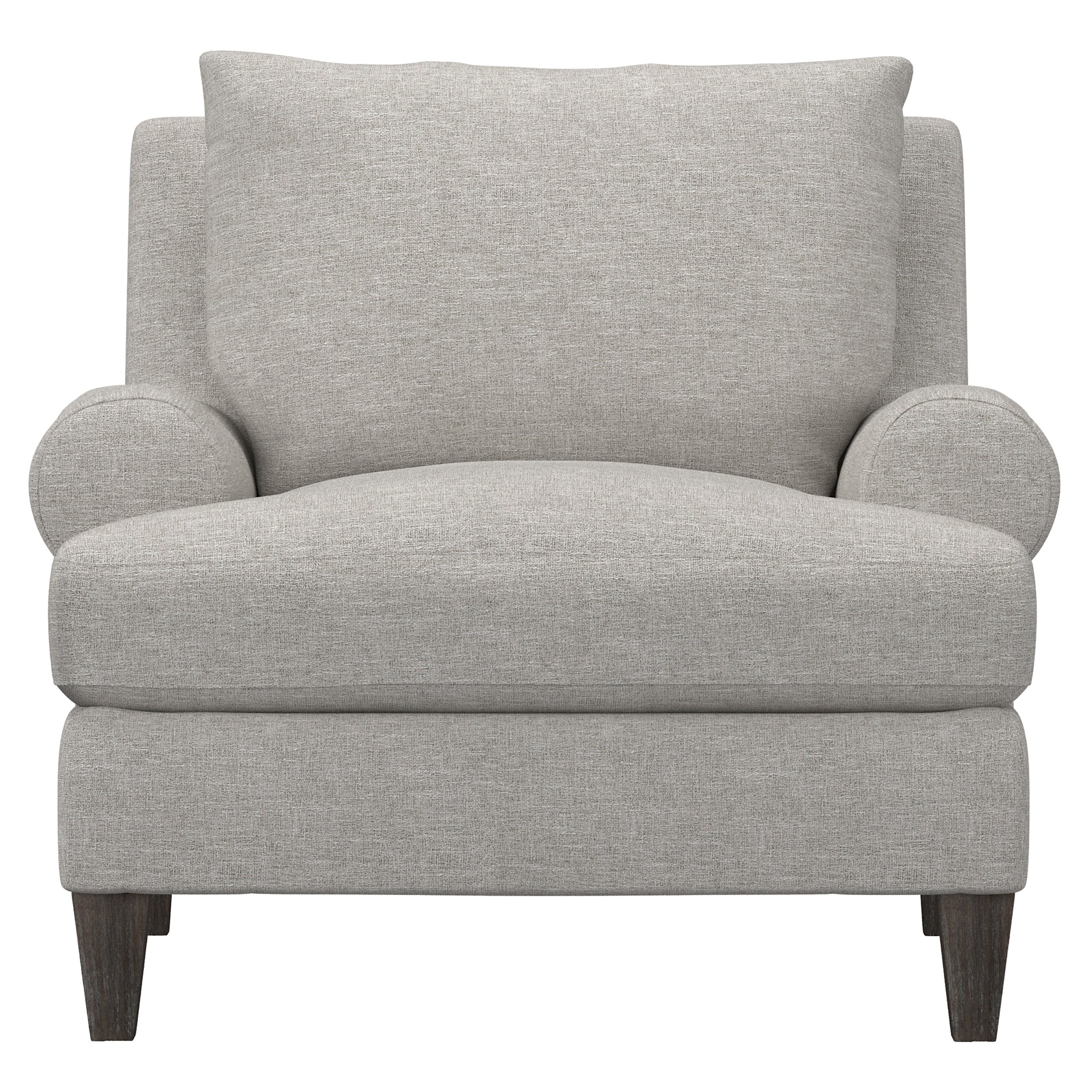 Low European-style seating.Rolled arms.Exposed wood legs.