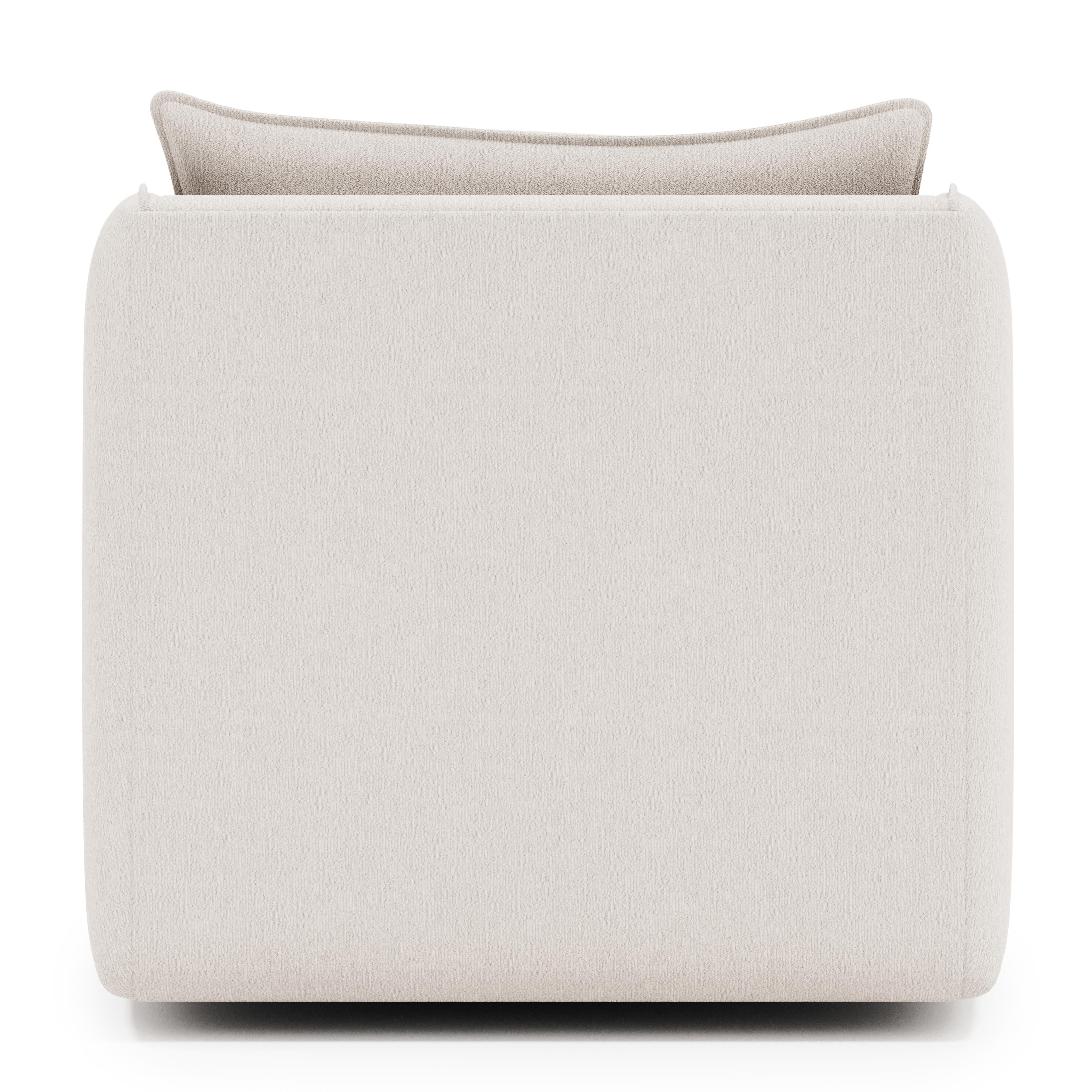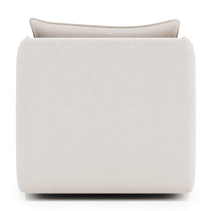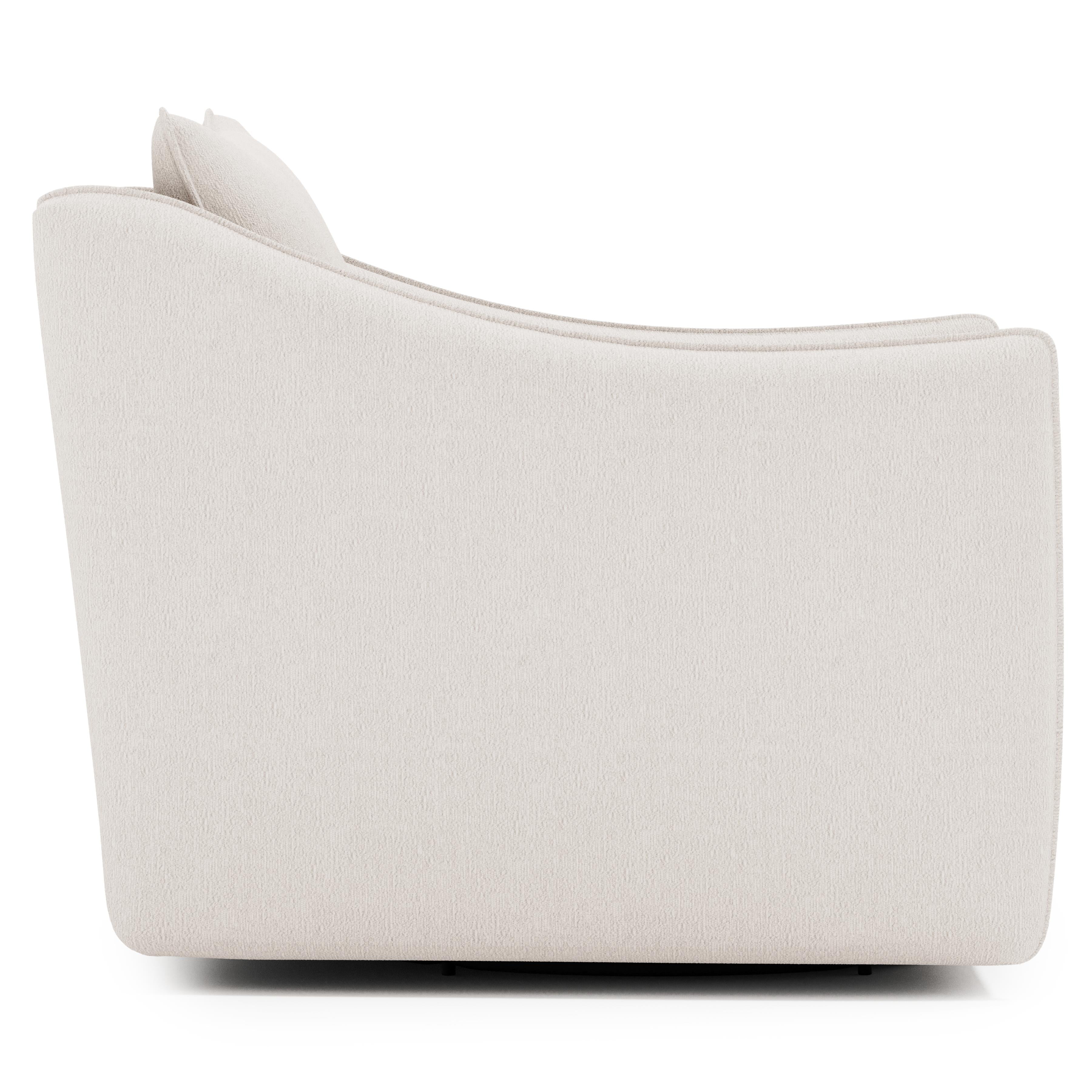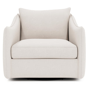 Sophisticated European style meets casual elegance. With a deep seat and superior plush cushioning, the Joli swivel chair offers unprecedented comfort. Stylish and modern, this piece combines natural fabrics with relaxed tailoring. Sloped arms with flange form graceful, contemporary lines, while a hidden swivel keeps the look clean.