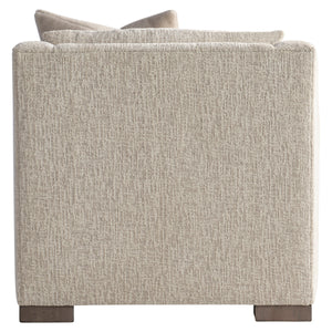 Exposed wood block feetSweeping lush curvesOversized arms with a deep seat