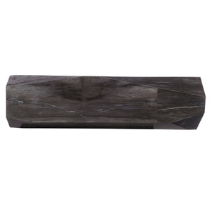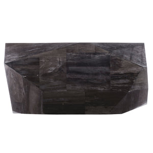 Black petrified wood exteriorHardwood plywood substrate underneathColor can vary slightly as each table is a unique natural materialFelt bottom to protect floor surfaces