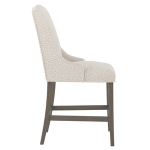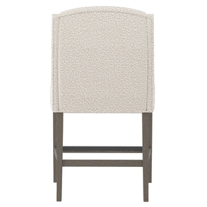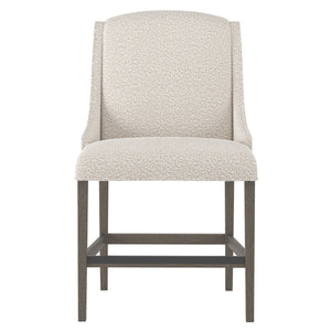 Upholstered inside and outside back. Upholstered seat with single welt.Non-wire-brushed finish on exposed wood legs and stretchers.Powder-coated Black finish on Steel kick plate on front stretcher.Optional nailhead trim available.
