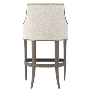 Upholstered inside and outside back and arm and seat.Nailhead trim around seat and outside of frame.Non-wire-brushed exposed wood legs and stretchers.Powder-coated Black finish on Steel kick plate on front stretcher.