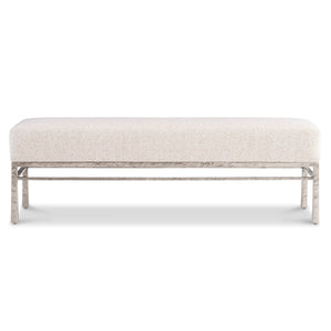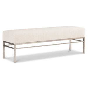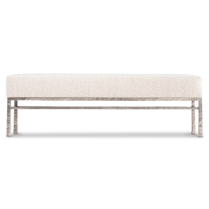 Textured cast aluminum base and stretchers in Frosted Nickel finishUpholstered bench seatFabric: B640Legs taper outAdjustable glides