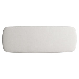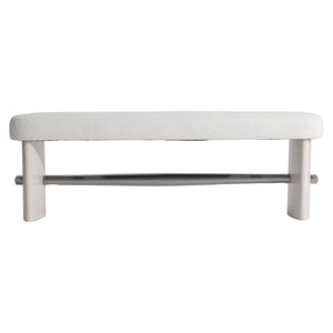 Upholstered seat atop cast resin support panels with textured wood grain look in Lutra finish and one brushed stainless steel stretcher in Nickel finishStretcher extends past base panelsAvailable in fabric B114White dome glidesSpecifications subject to change without notice