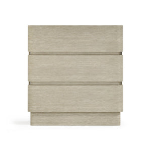 Oak solids and veneers in Clay finishThree wrap-around design, soft-close drawers with finger pullsA+C USB charging systemPlinth baseAdjustable glides