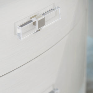 Engineered faux anigre�veneers in Linear White finish.Two drawers with fancy face drawer fronts.Adjustable glides.Note: For safety, an anti-tipping kit is included with instruction sheet.Note: Back of case is finished.
