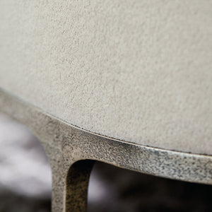 Upholstered seat with no welt or nailhead.Cast aluminum frame in Textured Graphite finish.Adjustable glides.