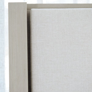 Engineered Faux Anigre veneers in Linear Gray finish.Wood-framed, winged�headboard with six inset upholstered panels - no welt.Wood footboard and side rails.Three slat support system with adjustable center supports.