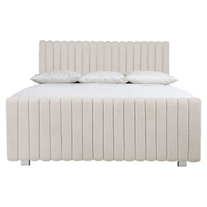 Upholstered, vertical channeled headboard and footboard with upholstered side rails.Metal ferrules on feet.Five wood slat support system with adjustable supports.Glides.