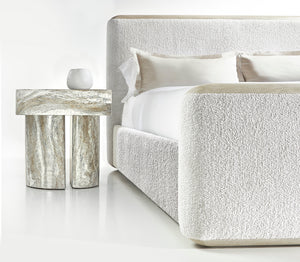Upholstered headboard and footboard with cast resin, woodgrain texture cap rails in Clay finishUpholstered side railsFabric: B132Standard with five wood slats with adjustable double center support legsSpecifications subject to change without notice