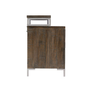 Sable Brown finish. Tubular steel feel in Gray Mist finish.Recessed, removable raised shelf on top with tubular steel end support frames in Gray Mist finish with felt tabs.Two drawers with metal tab pulls.Adjustable glides.Anti-tip kit.