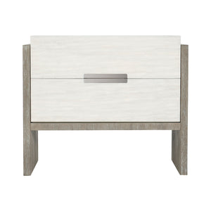 Two-tone finish - Drawer box in Linen finish, and support panels and rails in Light Shale finishTwo soft-closing drawers with finger pull with inset brushed stainless steel plateDual Port/USB charger on back of drawer boxAdjustable glides & Anti-tip kit.Not designed to support TV &/or other media