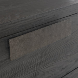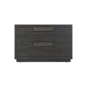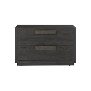 Ebonized Pine finish with two drawers and plinth base.Bernhardt name plate in top drawer.cast aluminum pulls.Adjustable glides.Anti-tip kit.