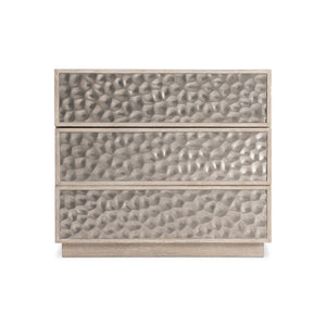 White oak case in Trevin finish with hammered cast aluminum inlays in Graphite finish on drawer frontsThree push-to-open drawersPlinth baseTwo-port A+C USB charging unit on back of caseAdjustable glidesAnti-tip kitNot suitable for use with TVSpecifications subject to change without notice