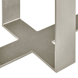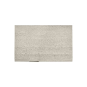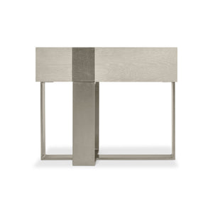 Wirebrushed oak drawer box in Larza finish and open sandblasted aluminum base in Satin Nickel finishFront accent aluminum post on front-facing left sideOne pull-to-open, soft-close drawer with finger pullTwo-port A+C USB Charging unitAdjustable glidesAnti-tip kitNot suitable for use with TVSpecifications subject to change without notice