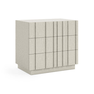 Wirebrushed oak in Larza finish with smooth top and sides and raised panel drawer frontsThree push-to-open drawersPlinth baseTwo-port A+C USB Charging unitAdjustable glidesAnti-tip kitNot suitable for use with TVSpecifications subject to change without notice
