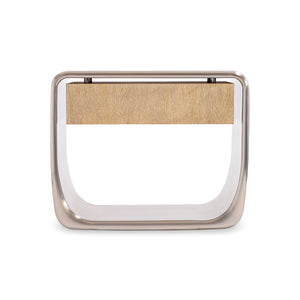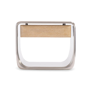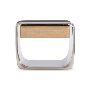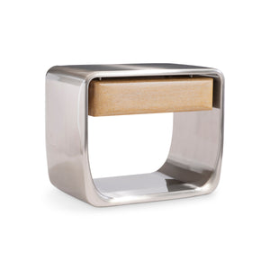 Oak drawer box in Trevin finish that appears to float in stainless steel surround in Tarnished Nickel finishOne drawer with push-to-open, organic edgeAdjustable glidesNot suitable for use with TVSpecifications subject to change without notice
