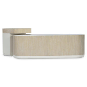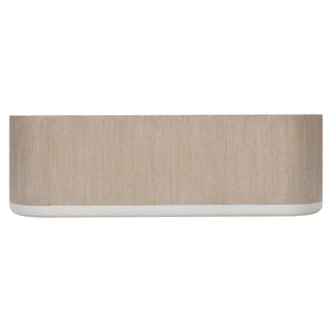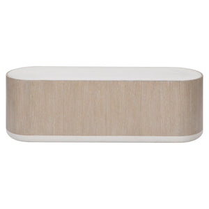 Inset cast faux stone top and base in Fossil finish.Marine grade plywood core.Balance of case is wood in Dune finish.Concealed non-marring heavy-duty casters.