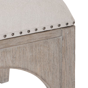 White oak solids and knotty white oak veneersFabric on upholstered slip seatPewter finish on wood baseNail trim in Antique NickelAdjustable glidesSpecifications subject to change without notice