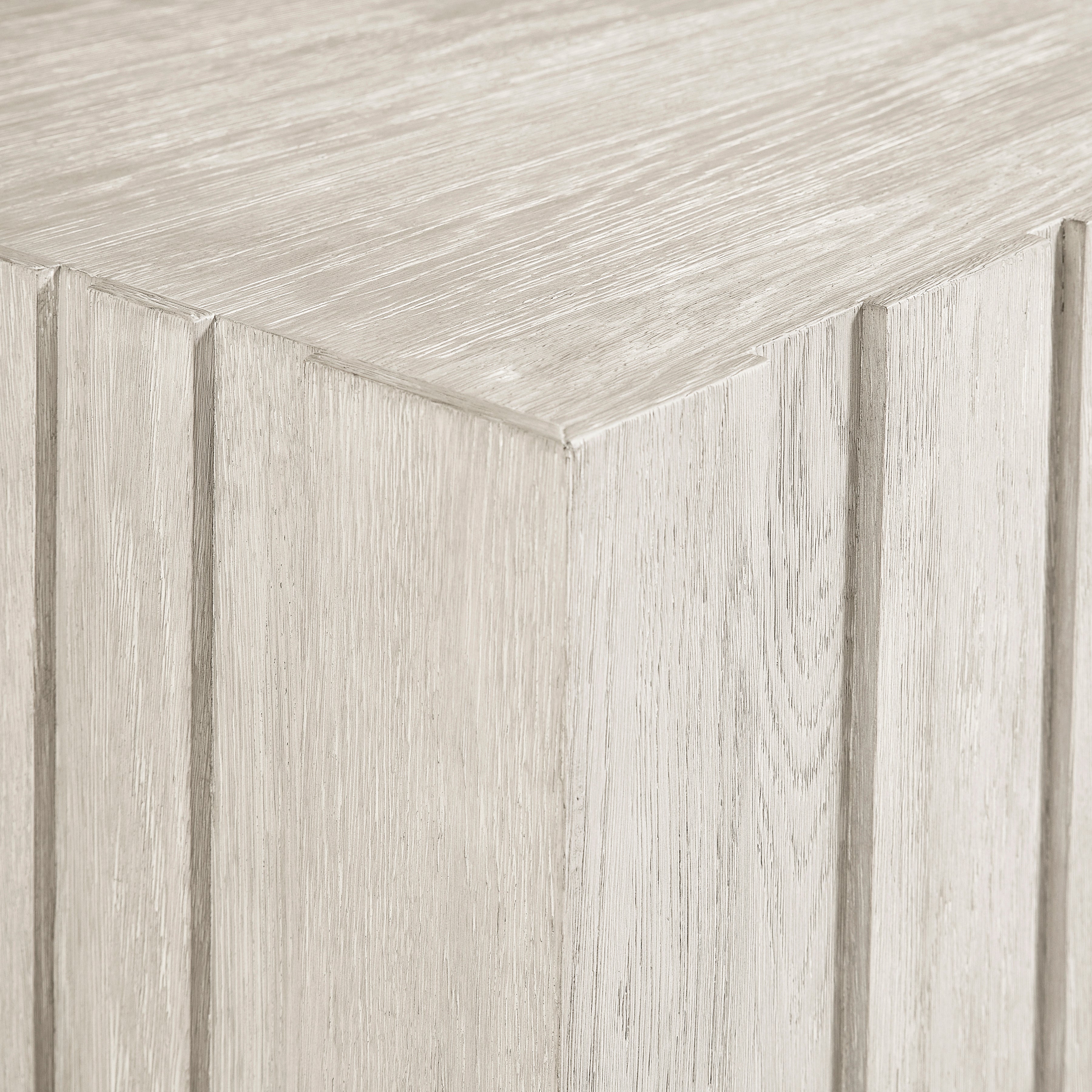 Wirebrushed oak in Larza finish with smooth top and geometric raised panels on sidesHeavy-duty castersSpecifications subject to change without notice