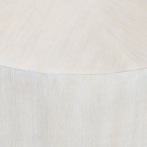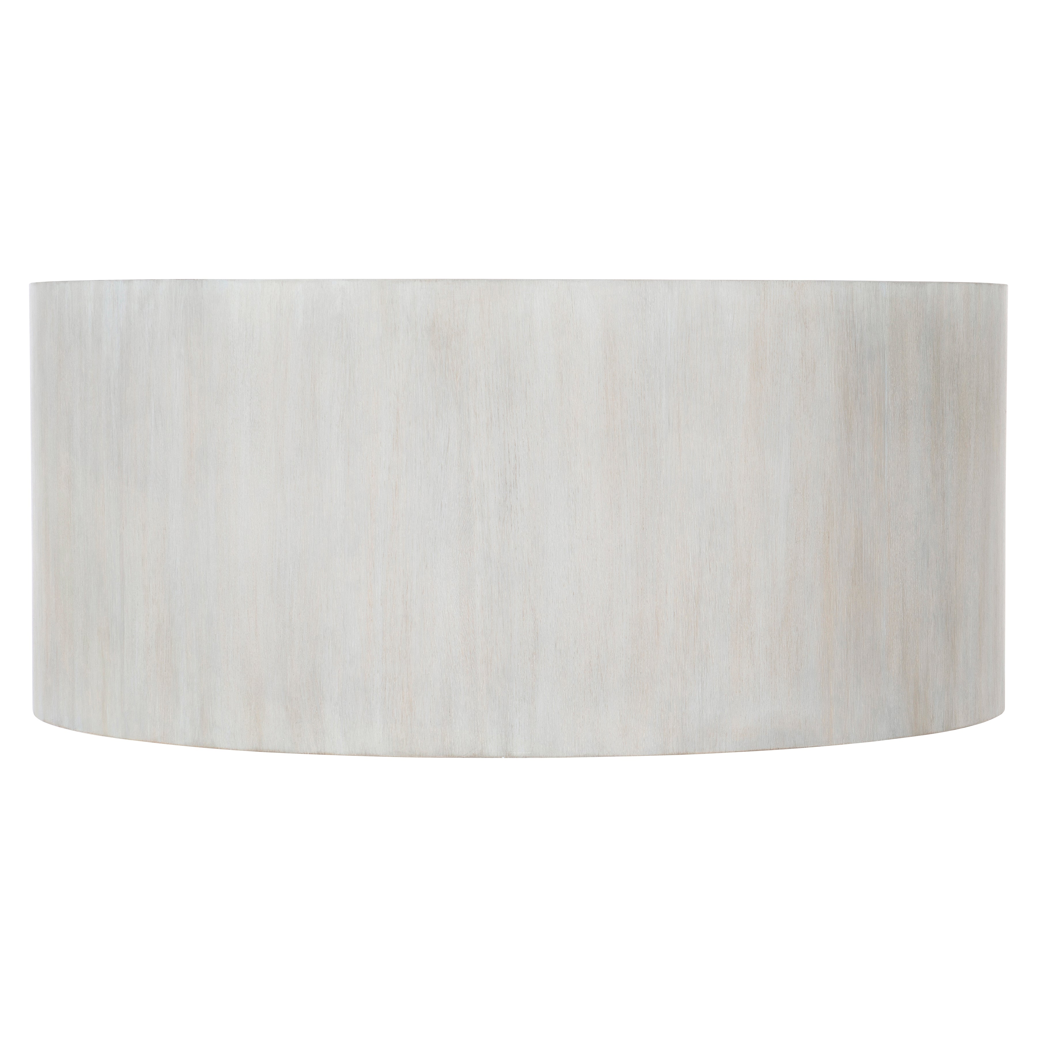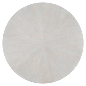 Round cocktail table.Fancy face top of rubberwood and poplar solids.Quartered White Oak veneer.Non-marring heavy-duty casters.