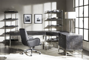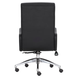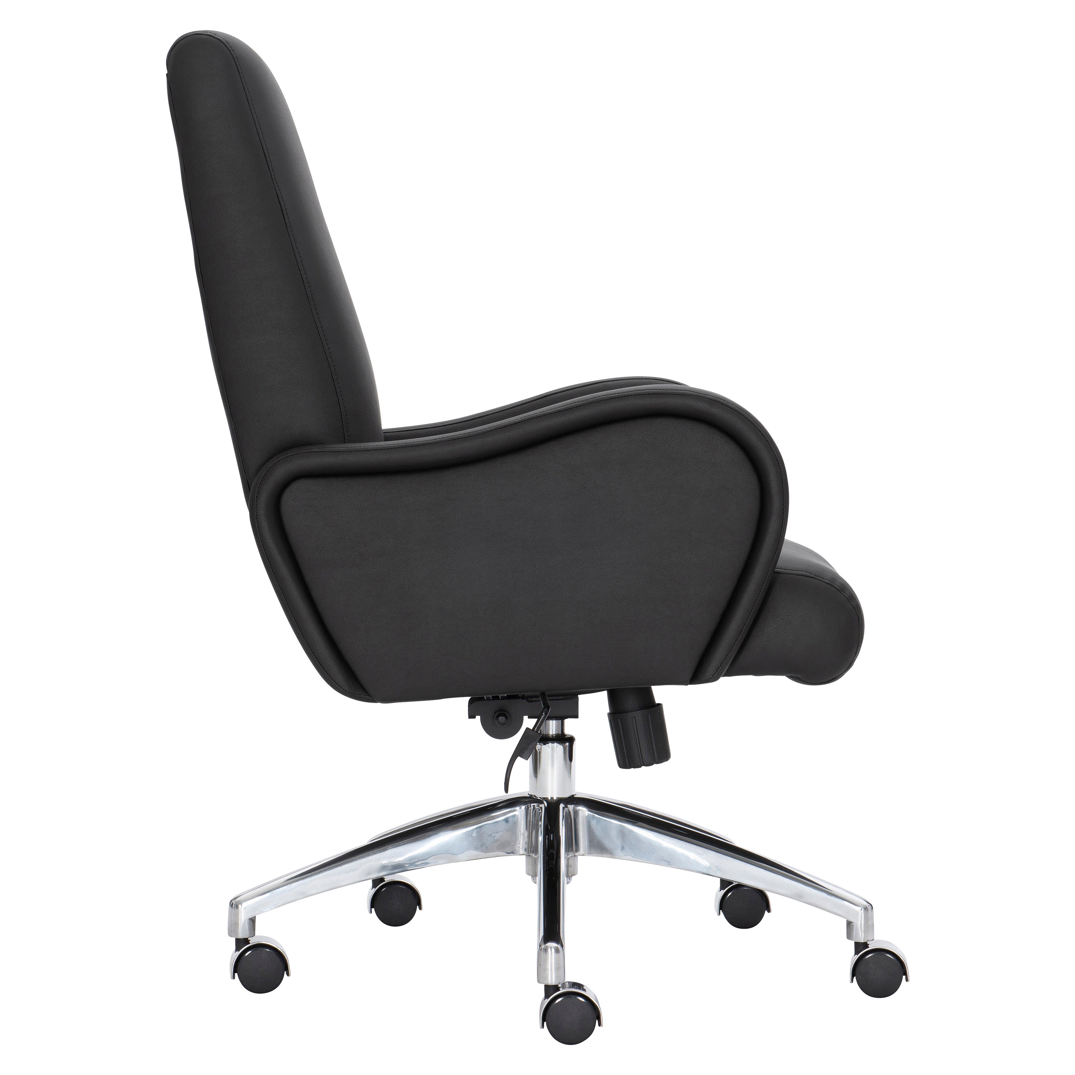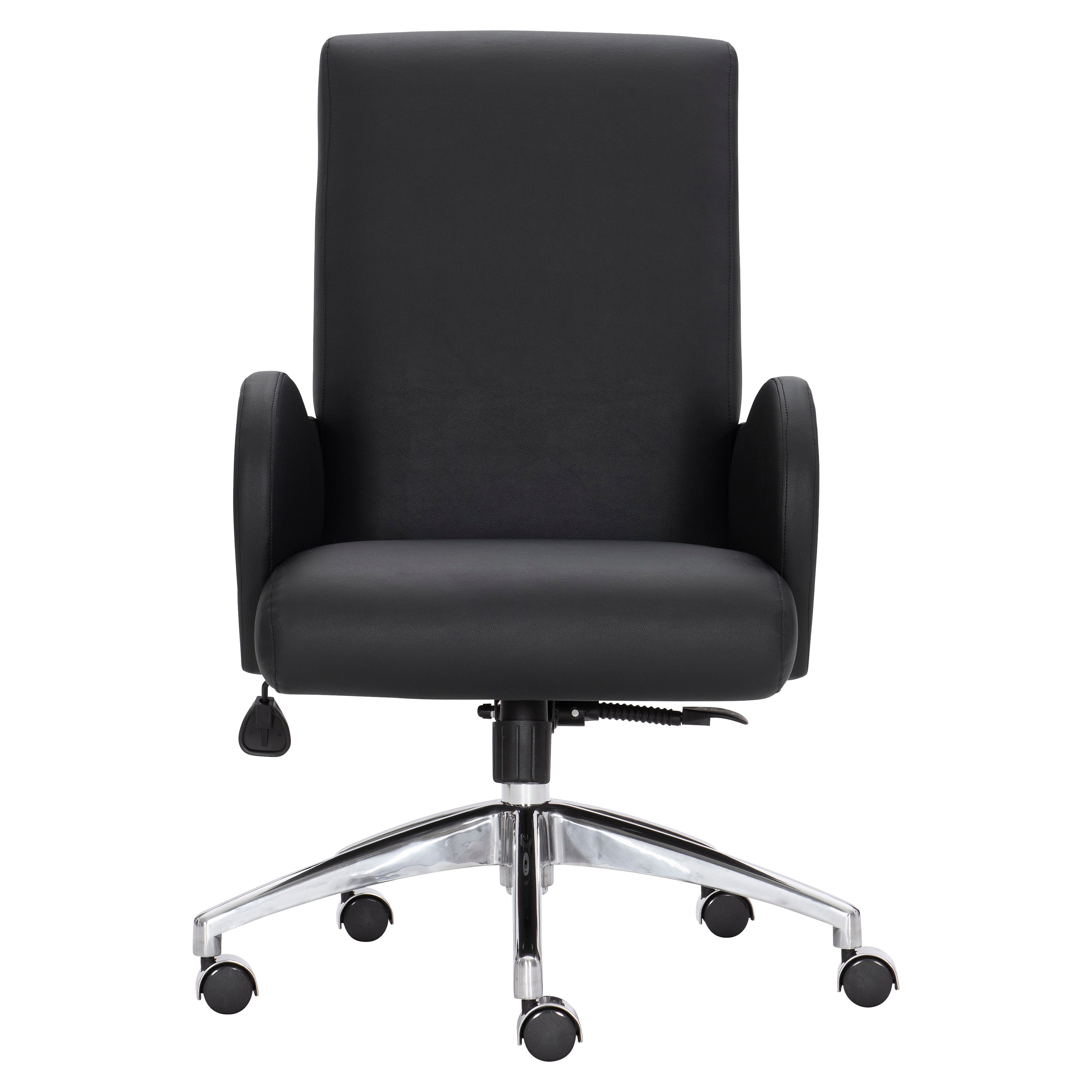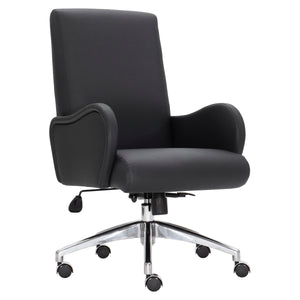 Upholstered back, seat, and arms.Stainless Steel five-prong swivel base with tilt and adjustable height.Non-marring black casters with Stainless Steel cover.