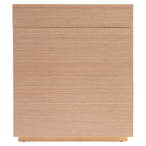 Desk with engineered veneers in Sahara finish. Polished Stainless Steel support panel on right end of desk and visible on desk top. Desk is finished on all sides.Grommet hole with cover in Shiny Chrome finish on desk top. Left drawer bank with four drawers.Power strip behind top left drawer with two USB ports and two outlets.Bottom file drawer accommodates letter or legal files. Center fully extendable drawer with drop front.Recessed adjustable glides for drawer bank. Package included with clear rubber boot and instruction sheet provided for optional use on bottom of the metal support for protection of hard floor surfaces.