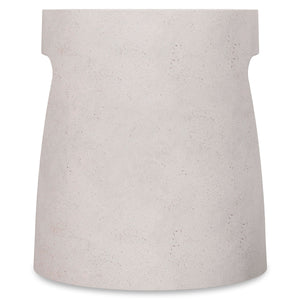 Wood-veneered desk drawer box in Tawny finish with curved, angled cast glass-reinforced concrete support ends in Buff finishOne covered grommet hole on desktop and one drop-front drawerOne power receptacle with two outlets and two USB ports located to the right side of the drawer and accessible underneathAdjustable glides