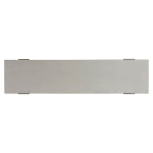 Console Table Top: Quarry smooth textured finish on glass-reinforced concrete (GRC) top.Console Table Base: Console table solid teak base in Weathered Teak finish with four splayed legs and stretchers.Stainless steel adjustable glides.All metal parts are Stainless Steel.Anti-tip kit and instruction sheet.