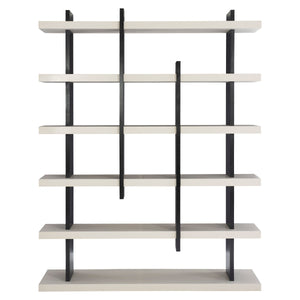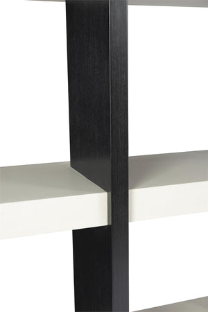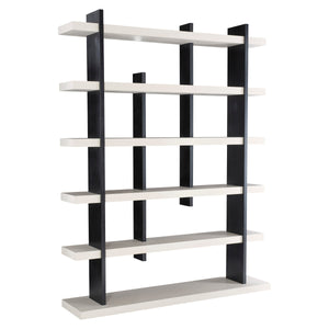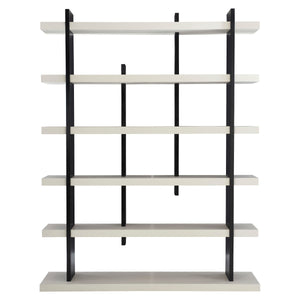 Open design on all sidesVertical frame sections in Onyx finishFive shelves and base in Eggshell finishAdjustable glidesAnti-tip kitNot designed to support TV &/or other mediaSpecifications subject to change without notice
