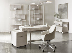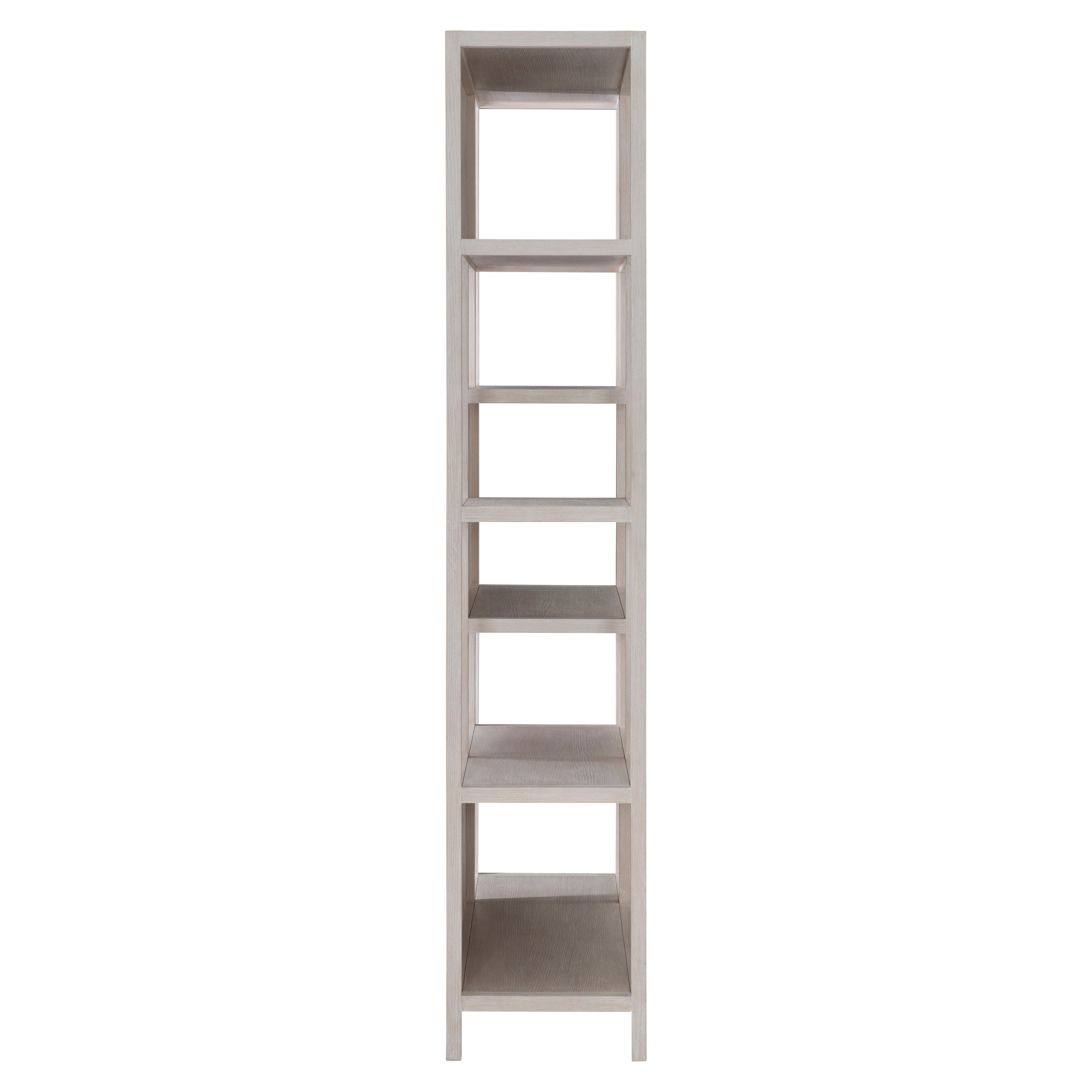 Weathered Bone finish on wood frame and on staggered cast back panels in chiseled patternWood panel on top and six wood shelves including the bottomAdjustable glidesAnti-tip kitSpecifications subject to change without notice