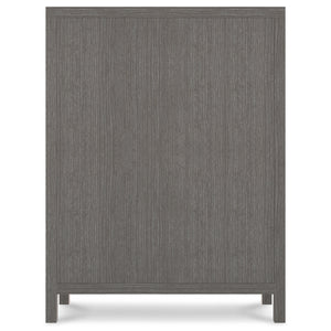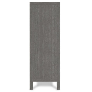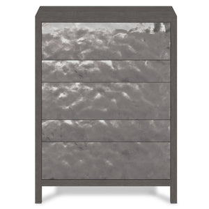 Ash wood solids and quartered oak veneer in Porcini finish with textured cast aluminum drawer fronts in Bright Graphite finishFive push-to-open, soft-close drawers in alternating smaller and larger sizesAdjustable glidesAnti-tip kit