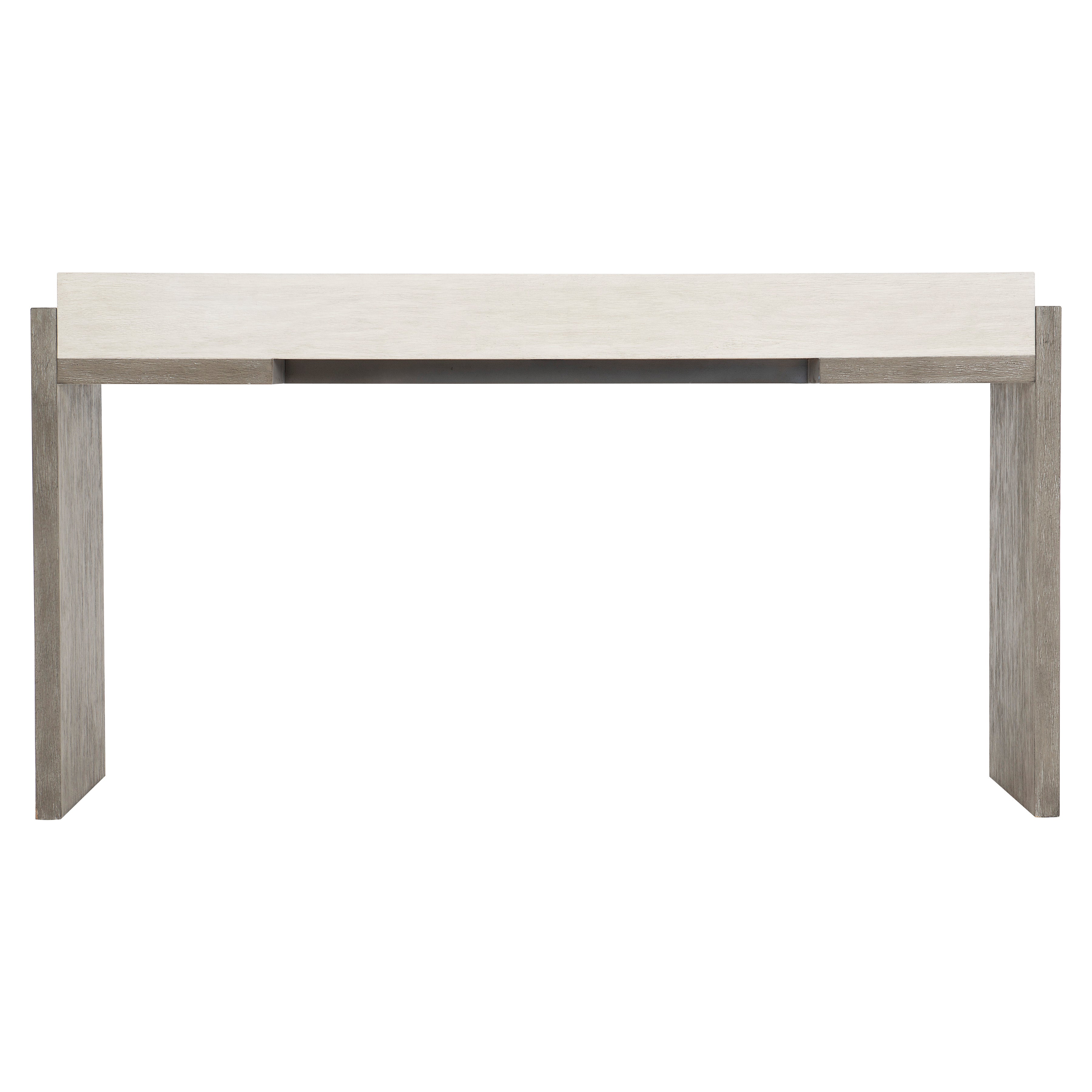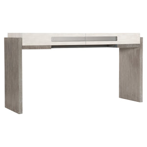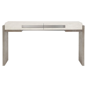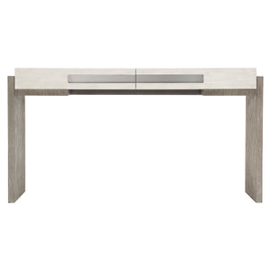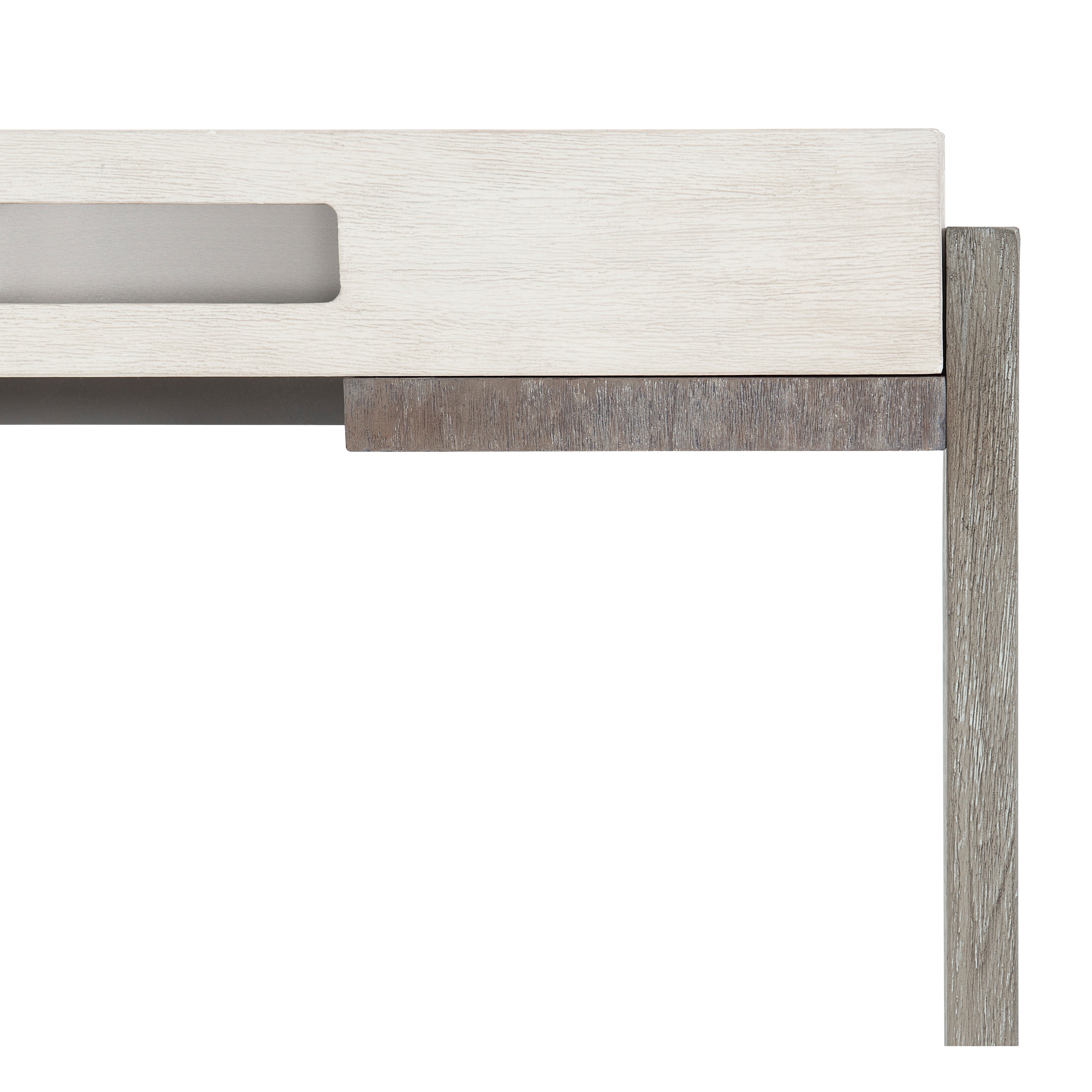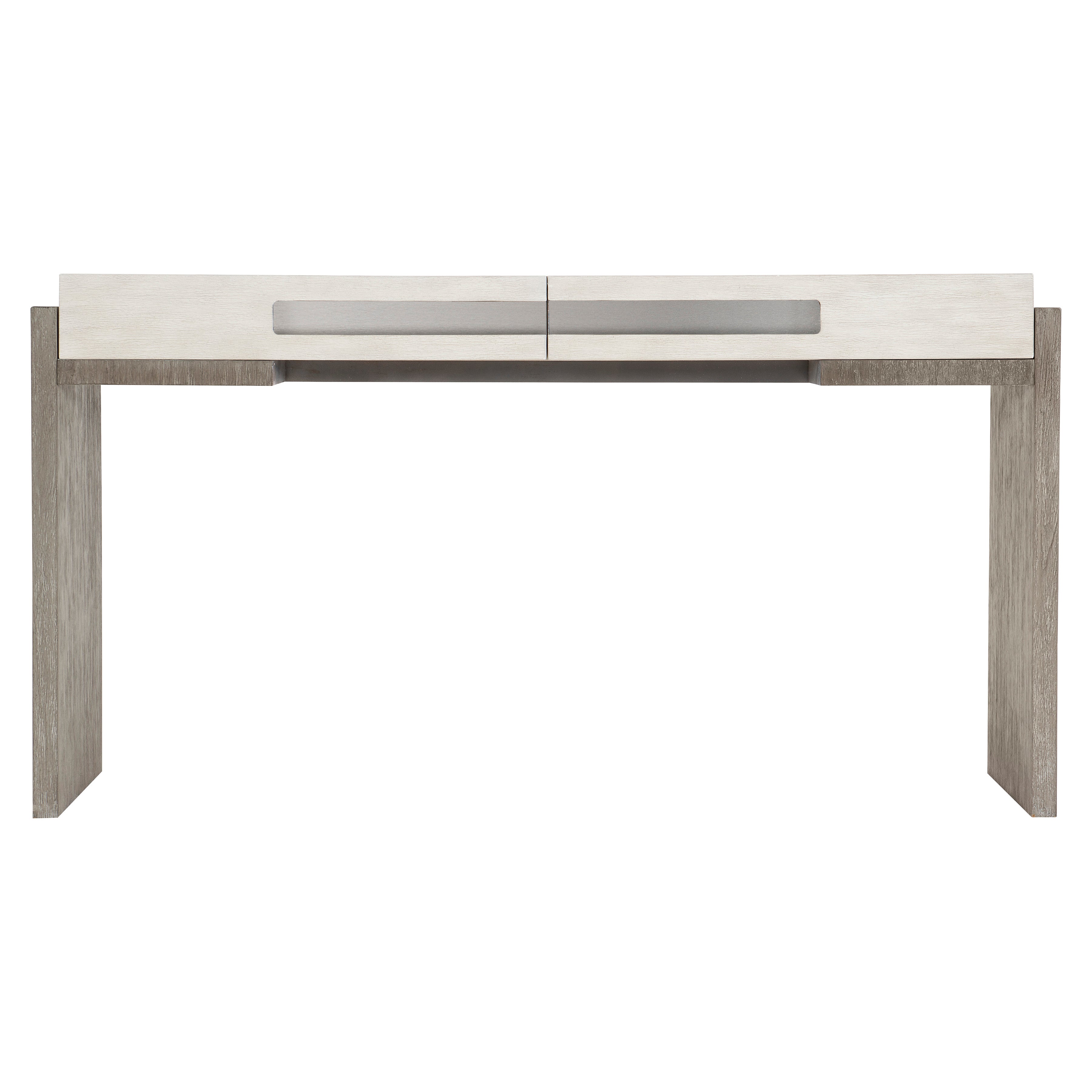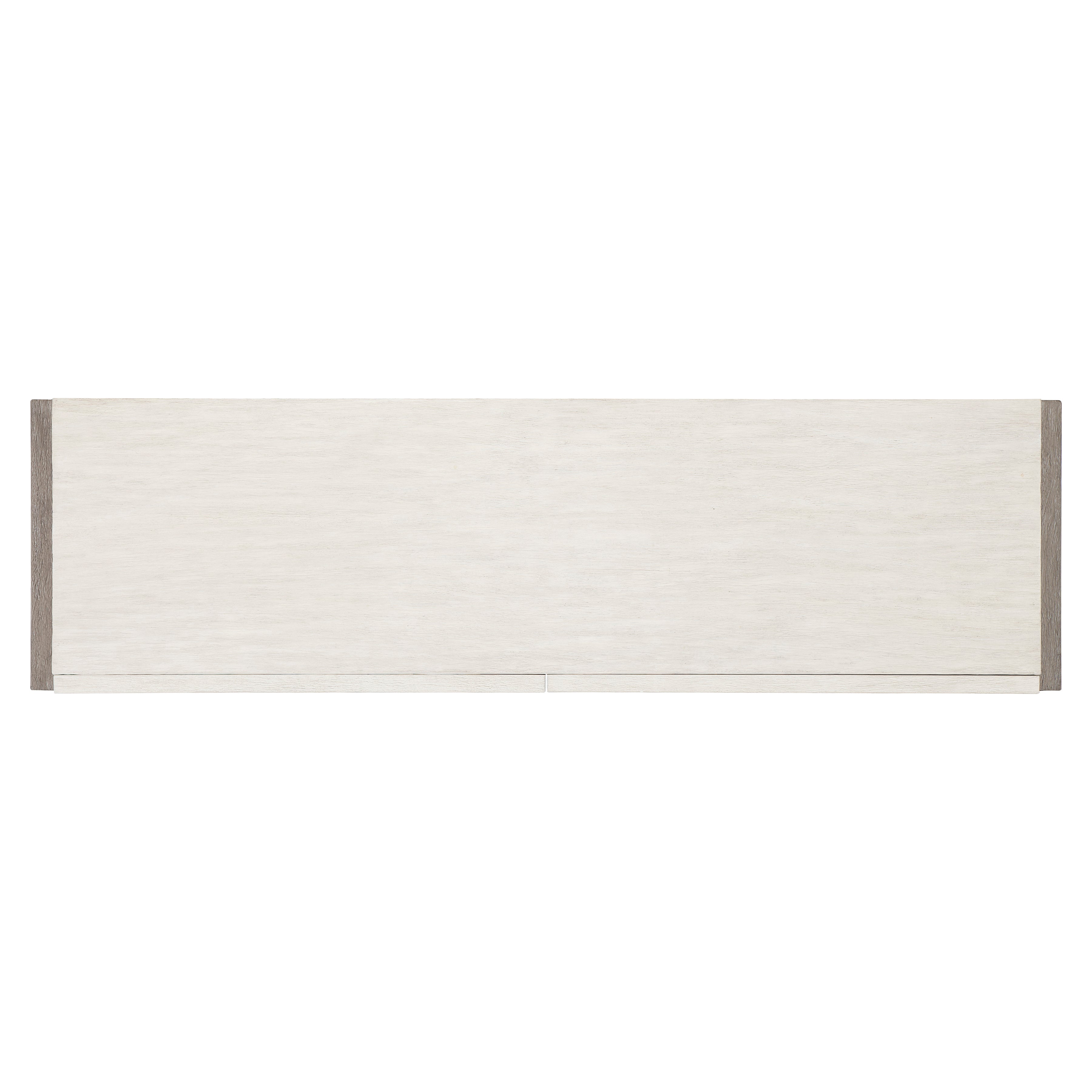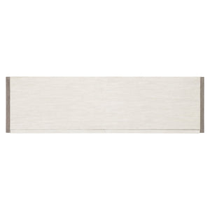 Two-tone finish - Drawer box in Linen finish and support panels and rails in Light Shale finishTwo soft-closing drawers with finger pull and inset brushed stainless steel panelAdjustable glidesAnti-tip kitNot designed to support TV &/or other media