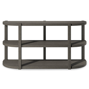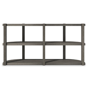 Wood posts, top and two open shelvesPorcini finishAdjustable glidesAnti-tip kit