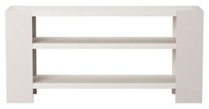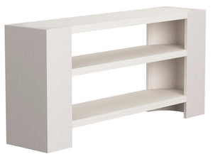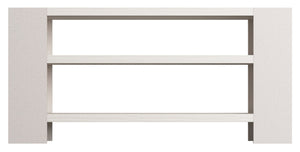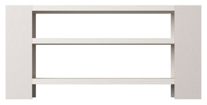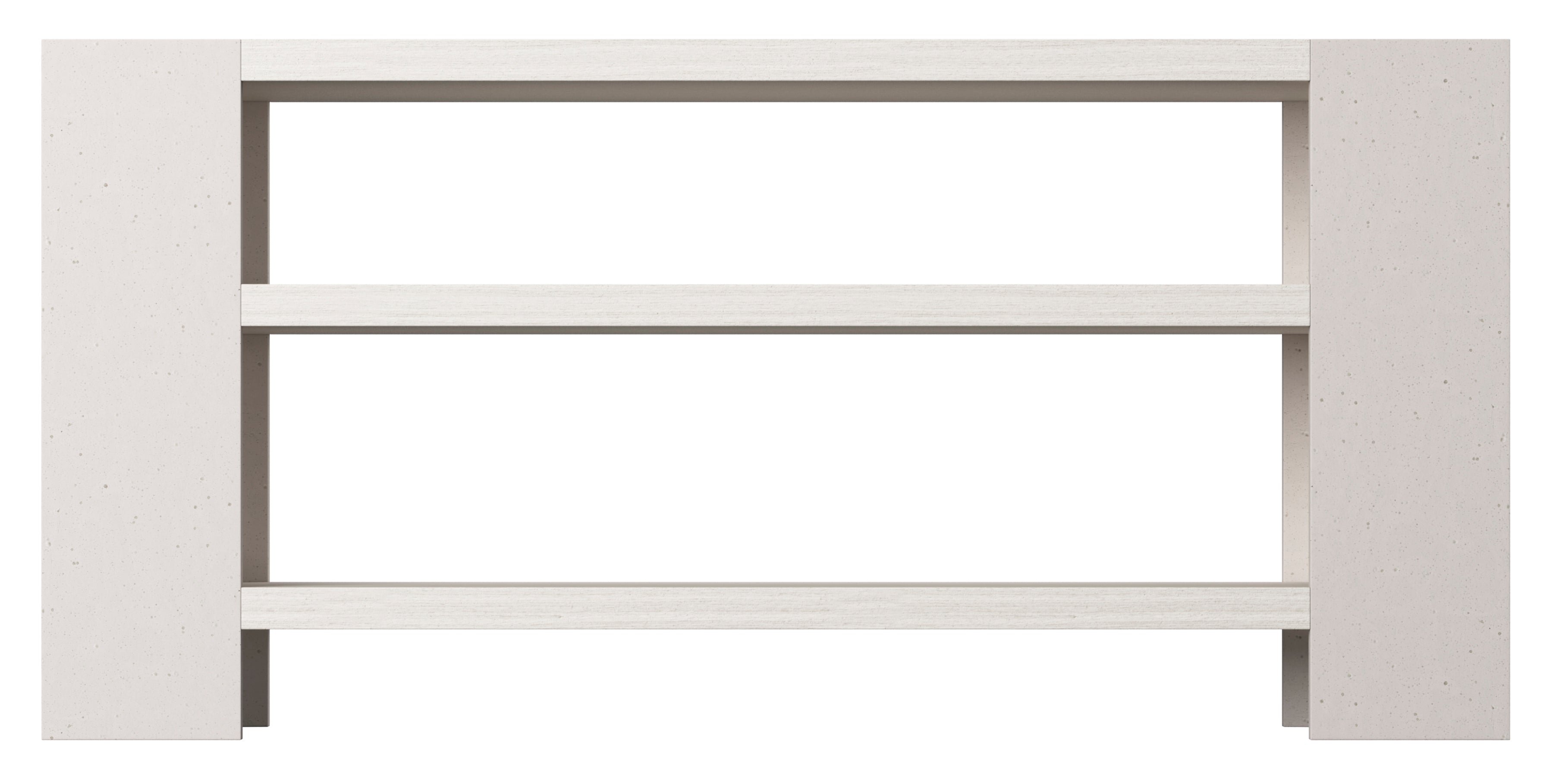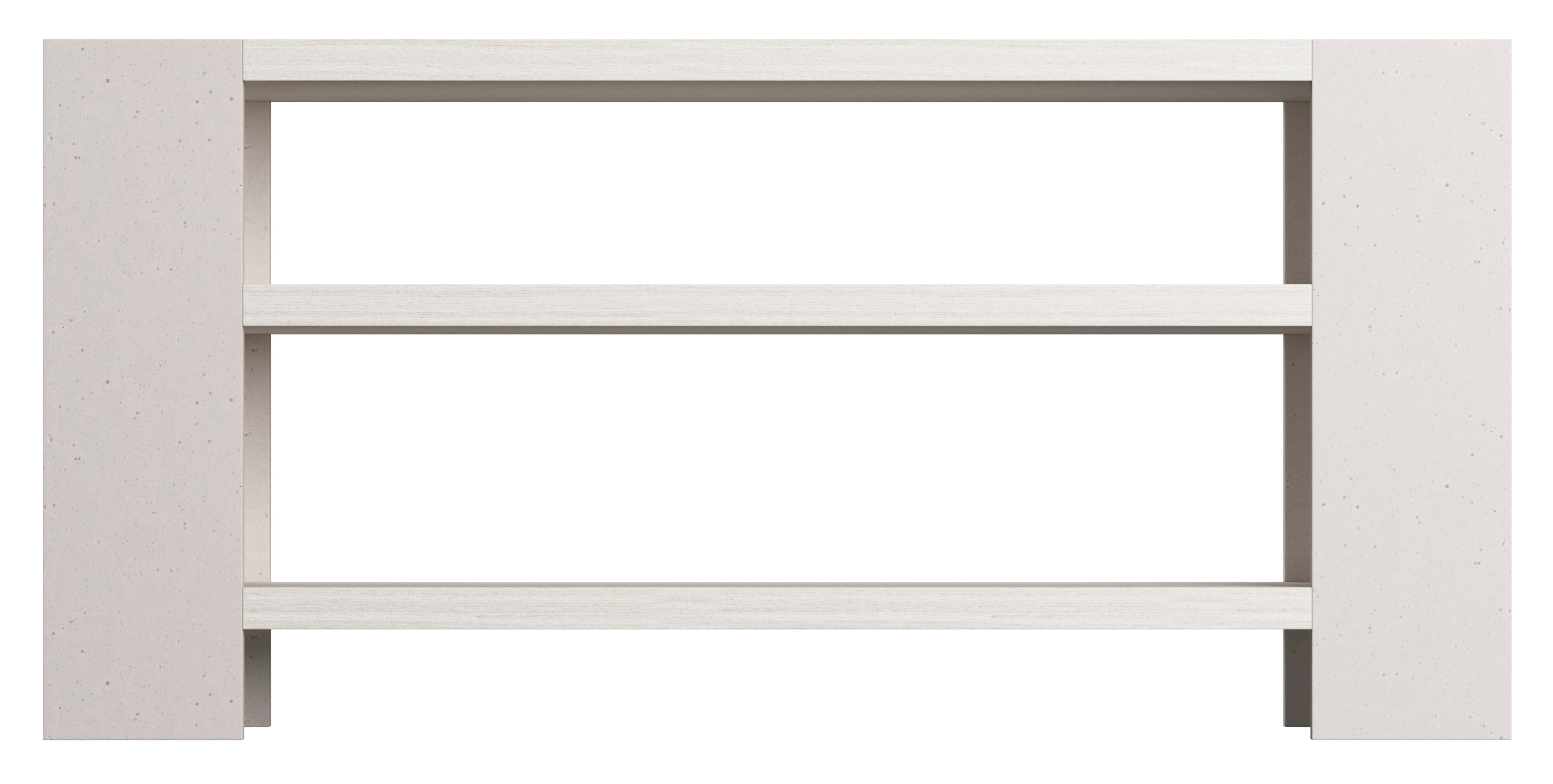 Engineered wood veneer in Mist finish on inset top and two fixed shelves, and vertical faux stone end supports in Fossil finishAdjustable glidesAnti-tip kitSpecifications subject to change without notice
