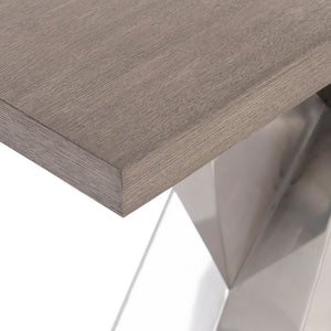 Multitriangular, polished stainless steel base in Light Bronze finish, supporting a table top of oak solids and veneers in Kona finishAdjustable glidesNot suitable for use with TVSpecifications subject to change without notice