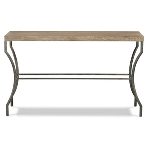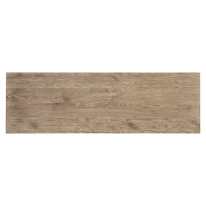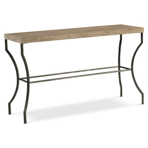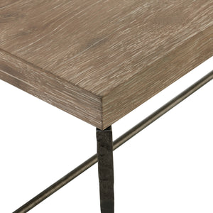 Oak table top in Aurum finish supported by textured steel base with stretchers in Barlow finishNatural characteristics in the wood are a normal part of this finish and make each piece uniqueAdjustable glidesAnti-tip kit includedNot suitable for use with TV