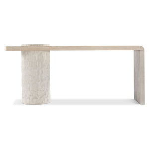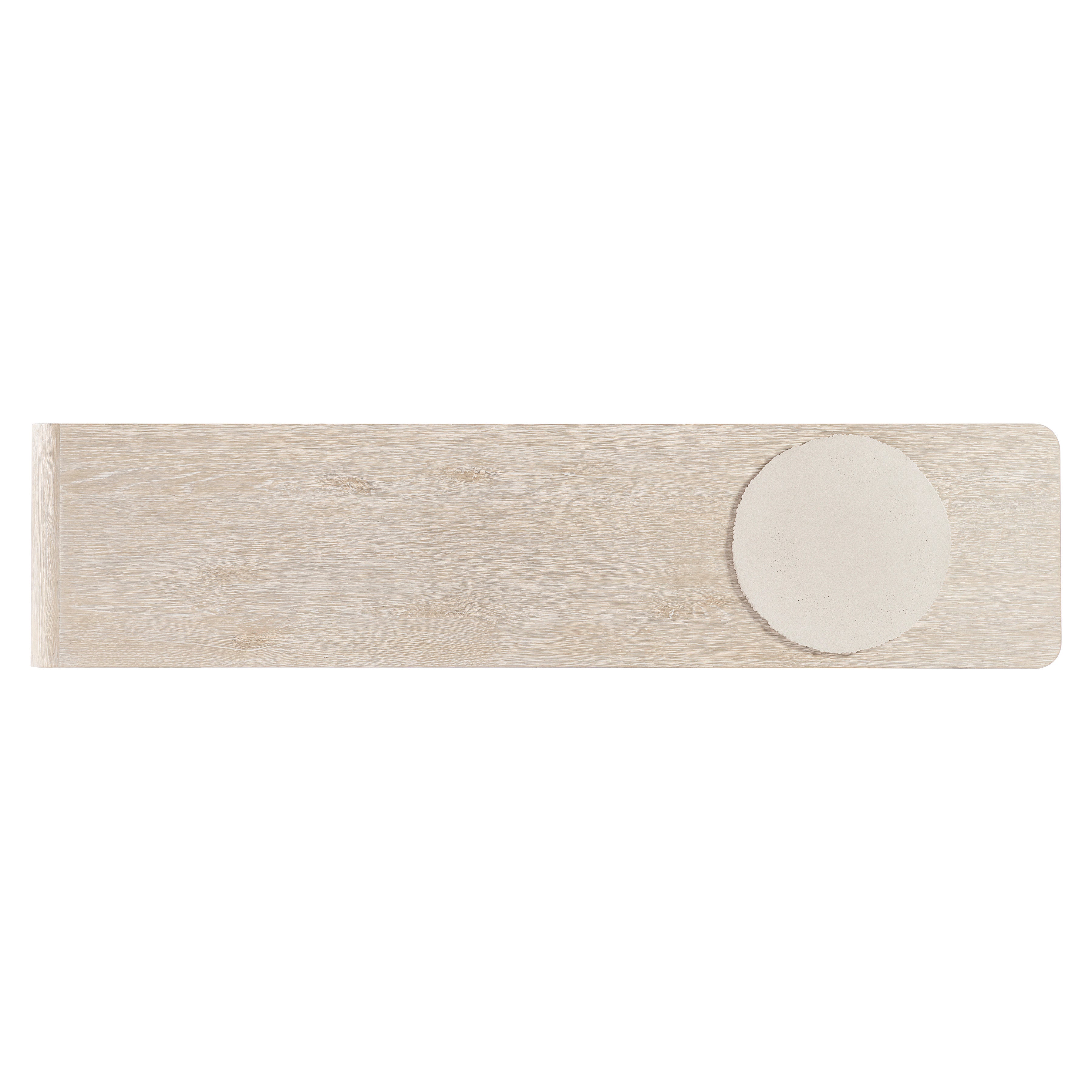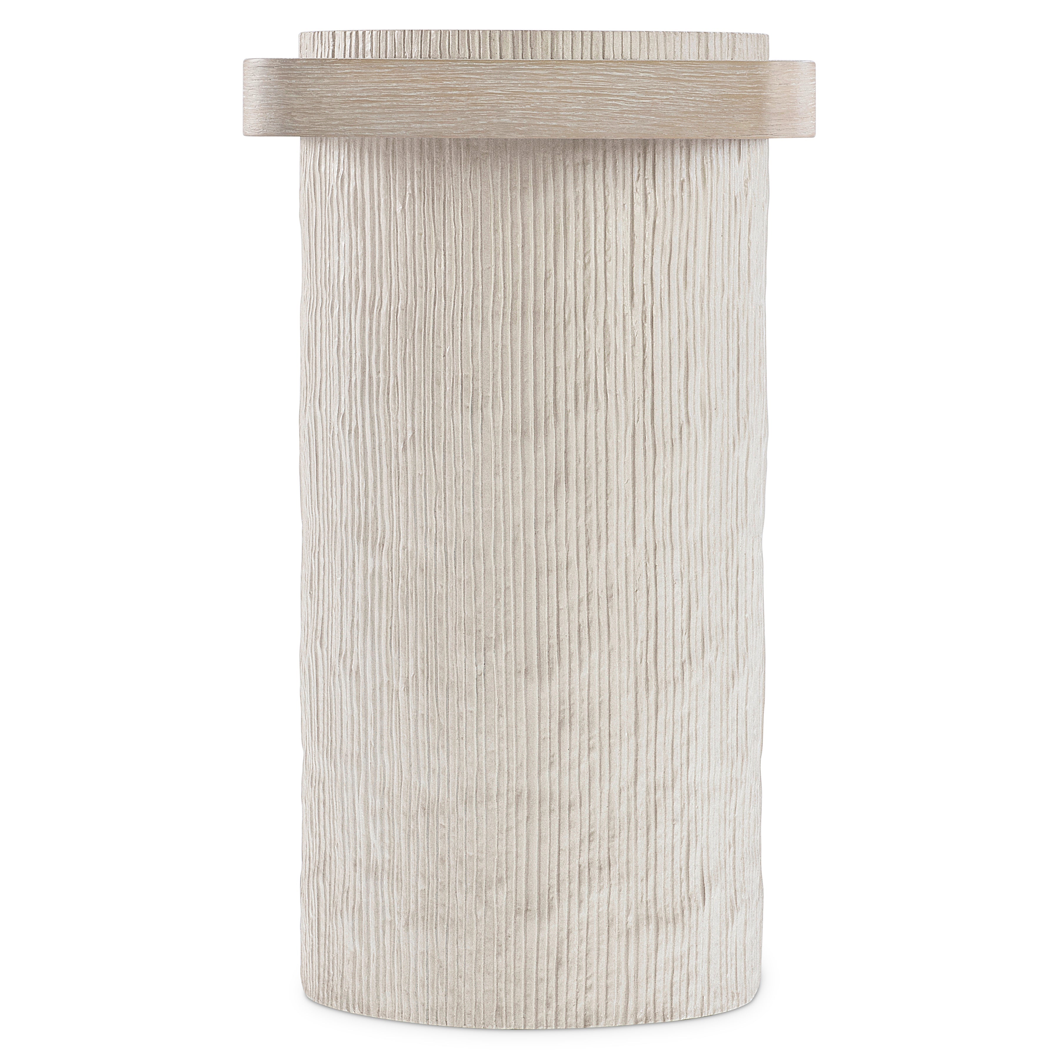 Rustic oak table top in Roz finish supported by glass-reinforced pedestal column in Pumice finishAdjustable glidesSpecifications subject to change without notice