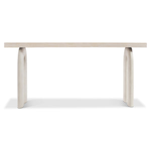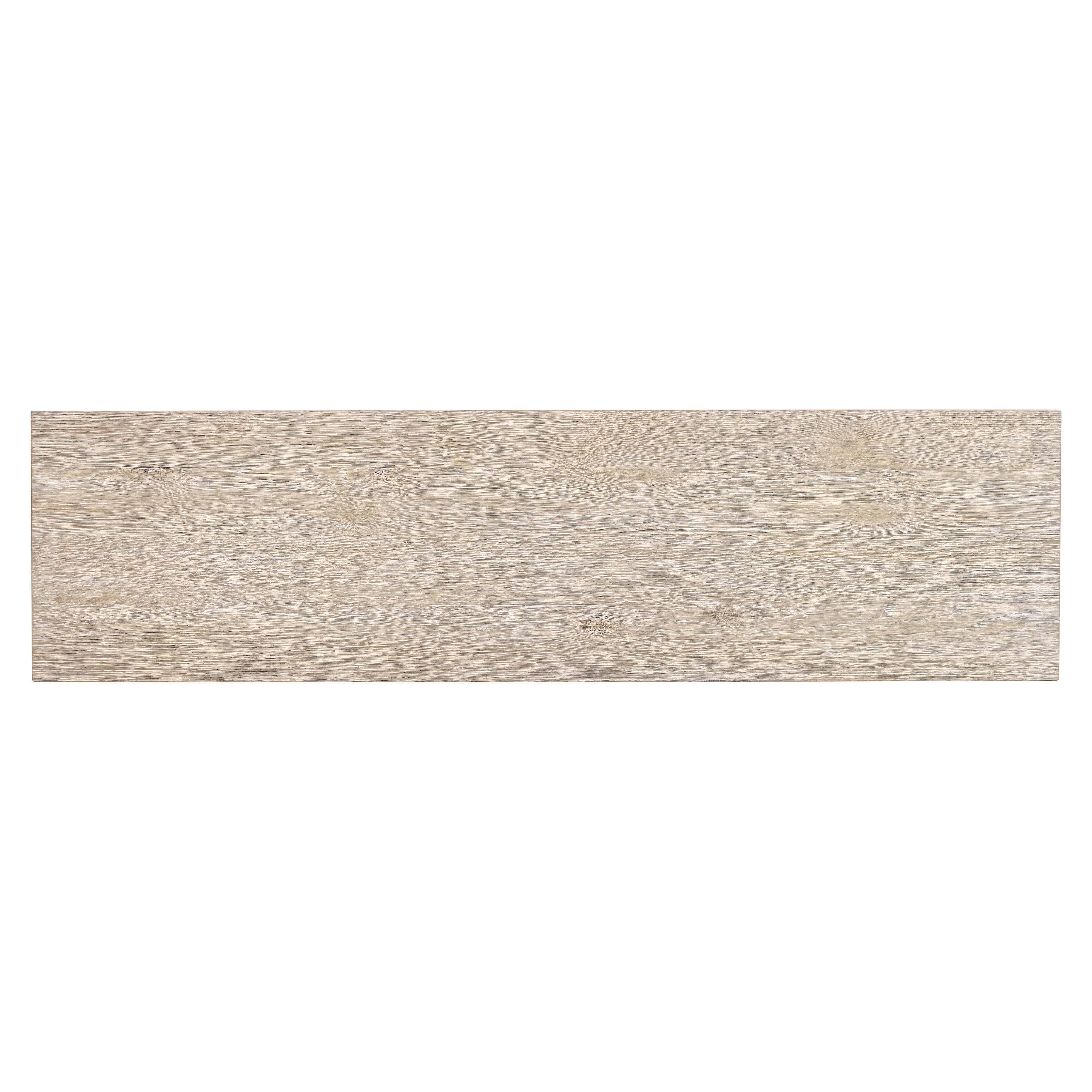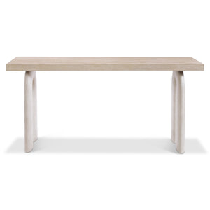 Rustic oak top in Roz finish supported by two arched, glass-reinforced concrete panels in Pumice finishSupport panels have slight, pitted textureAdjustable glidesSpecifications subject to change without notice