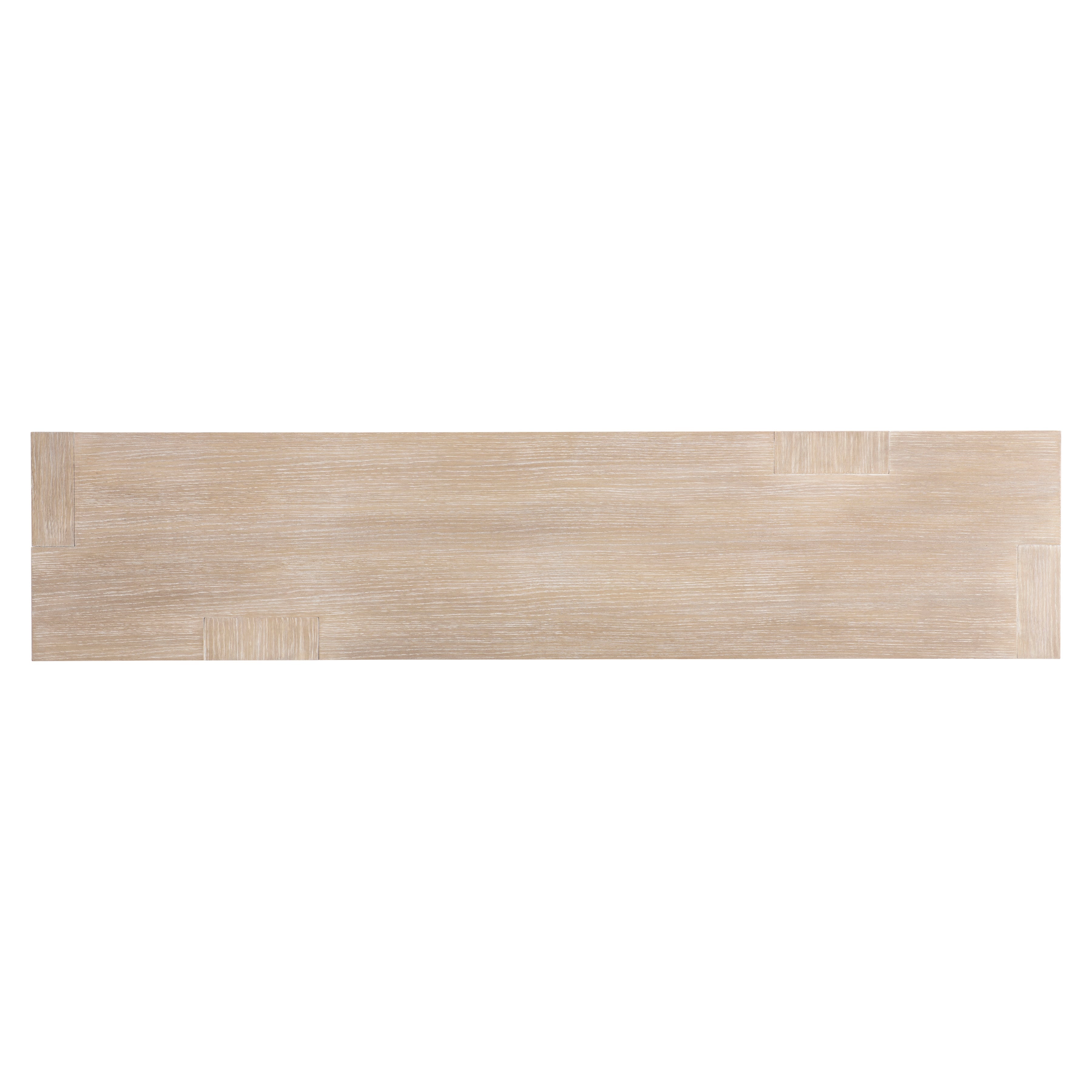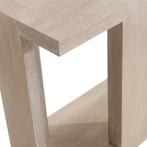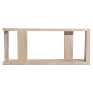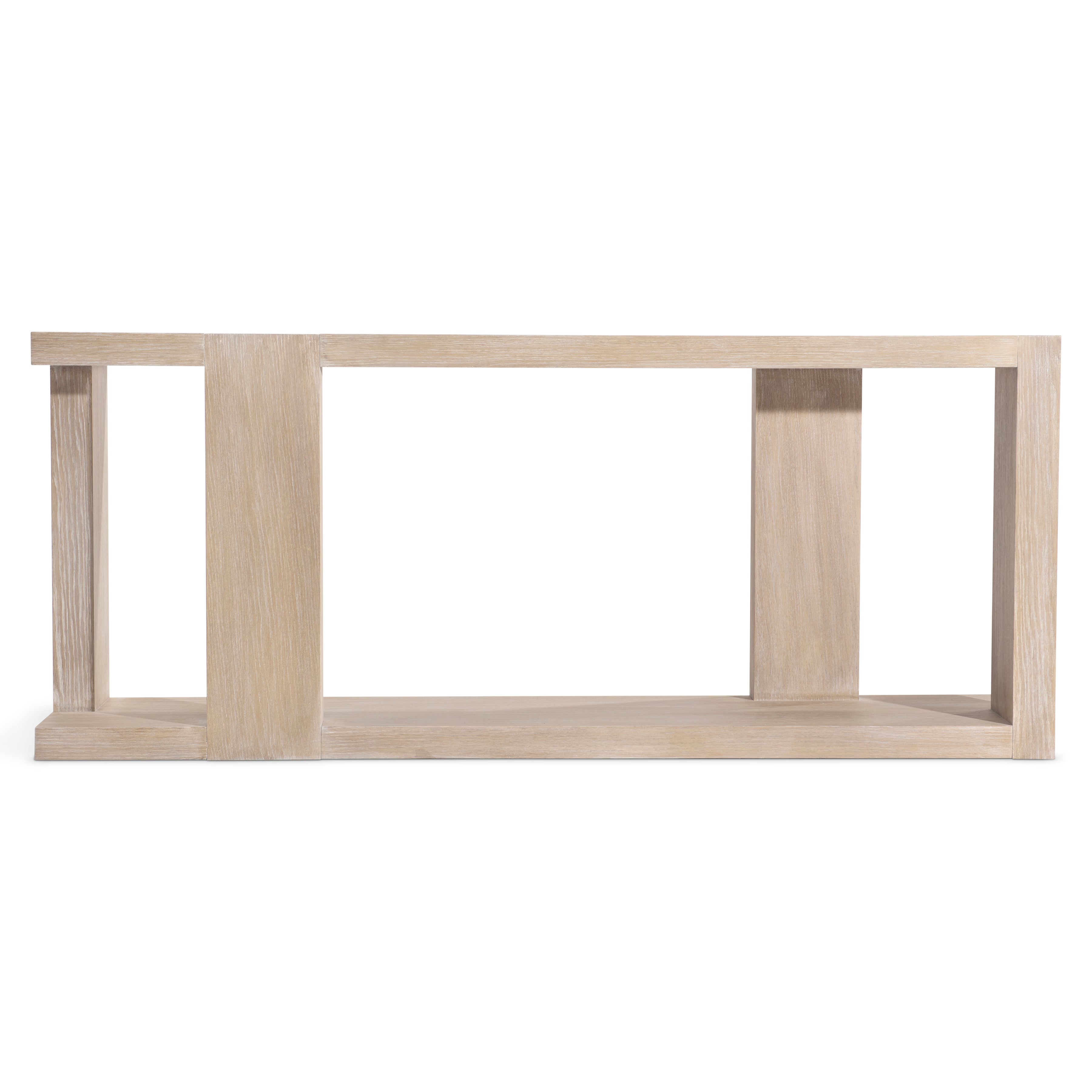 Oak solids and veneers in Atacama finishTop and bottom shelves supported by four asymmetrical postsAdjustable glidesAnti-tip kitNot suitable for use with TV