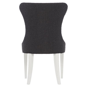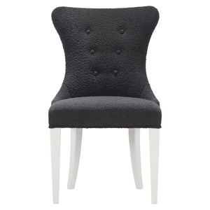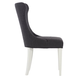 Eggshell finishUpholstered seat with bottom weltUpholstered inback with buttonsUpholstered outback