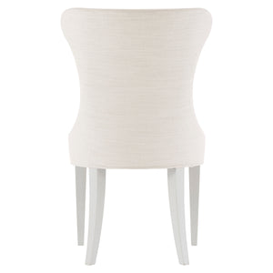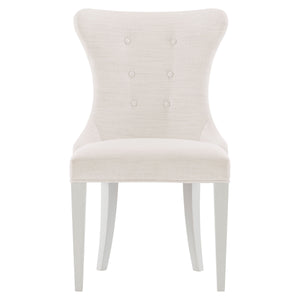 Eggshell finishUpholstered seat with bottom weltUpholstered inback with buttonsUpholstered outback