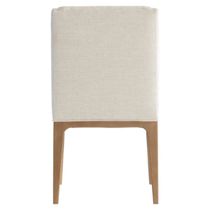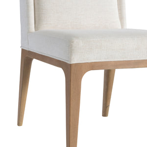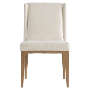 Upholstered inside and outside back and seat.Welt around seat.Exposed wood seat rails and legs in Sahara finish.Black glides.