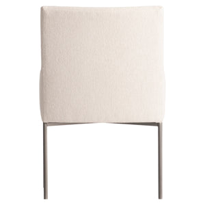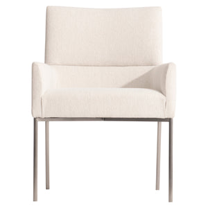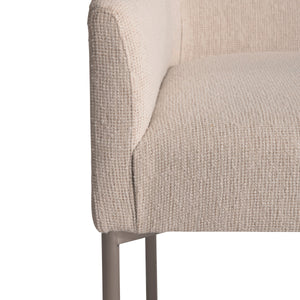 Upholstered with exposed brushed stainless steel legs in Nickel finishAvailable in fabric B114Adjustable glidesSpecifications subject to change without notice