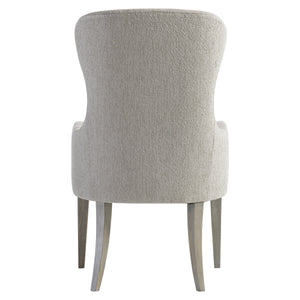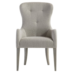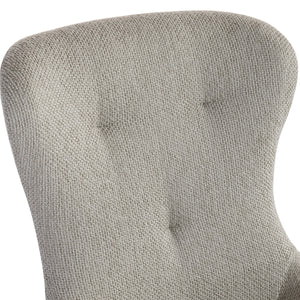 Upholstered frame with blind tufted pulls atop exposed wood legs in Nebbia finishAvailable in fabric B115GlidesSpecifications subject to change without notice