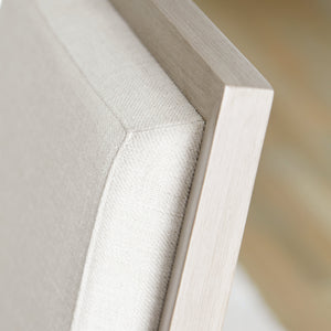 Upholstered seat and inside back panel with top stitching and welt around seat bottom.Upholstered outside back panel with welt.